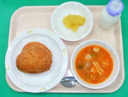 *カレーパン *ミネストローネ *りんごとさつまいものレモン煮 *牛乳 .