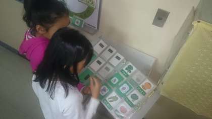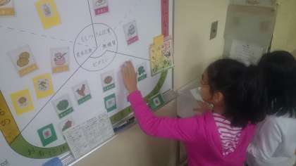 休み時間を利用して、給食の献立を新しくしています。(11月5日)
