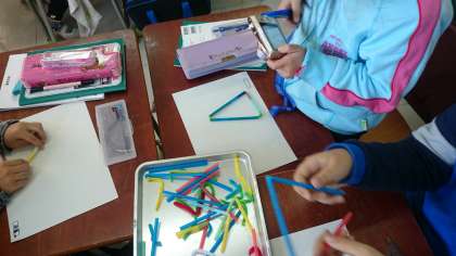 二年生で学習した三角形の特徴を利用していろいろな形の三角形を作りました次回、グループわけするために、デジタルカメラで画像保存しました。(12月1日)