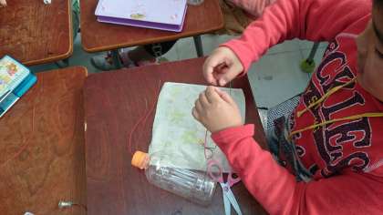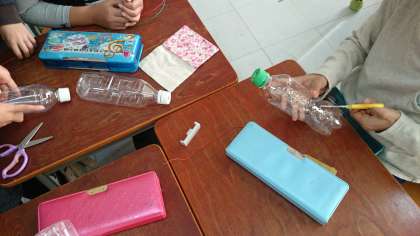 明かりが付く仕組みがわかり、ペットボトルを利用して懐中電気を作りました。(12月12日)