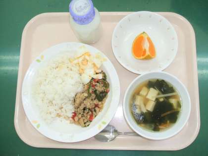 *ガパオライス *わかめスープ *くだもの(早香) *牛乳