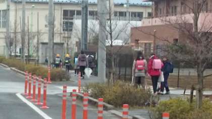 子ども達が登校するときは、冷たい雨が上がり始めていました。(1月12日)