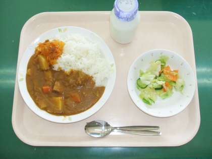 *カレーライス *福神漬 *野菜の甘酢かけ *牛乳
