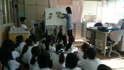 3学期の身体測定が始まっています。測定を始める前に姿勢についての保健指導がありました。(1月14日)