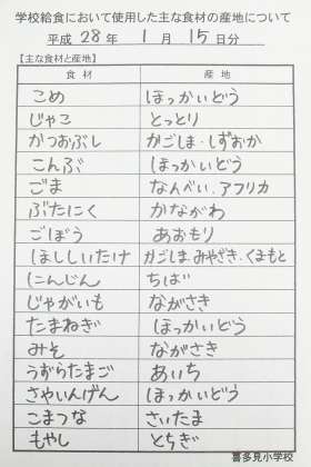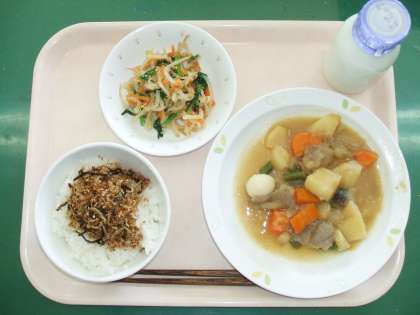 *ごはん *カミカミつくだ煮 *五目うま煮 *野菜のごま和え *牛乳