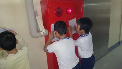 校内の防災設備を調べました。自分の予想以上にいろいろな場所に設置されていることに驚いていました。(1月15日)