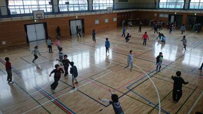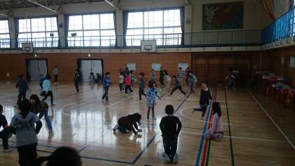 雪のために、休み時間は体育館の学年だけ遊ぶことができました。(1月18日)