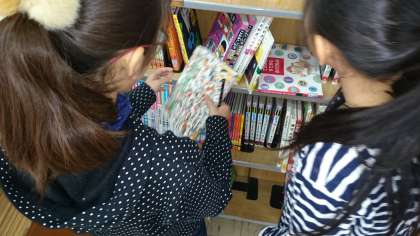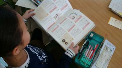 かるた作りをしています。今日は、かるたに出てくることわざの意味を図書室にある本から探して調べました。(1月19日)