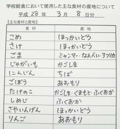 *雑穀ごはん *鮭の南部焼き *じゃがいものきんぴら煮 *くだもの(りんご) *牛乳