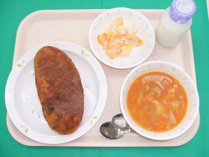*ココア揚げパン *ミネストローネ *フルーツヨーグルト *牛乳