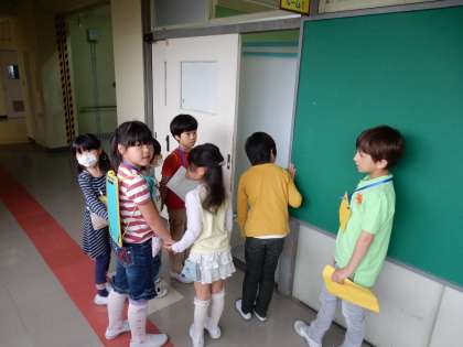 学校案内(2年生) 公開日 2016/04/30 更新日 2016/04/30 2年生 学校案内をしました。1年生と手をつないで学校を回り、調べた教室について説明しました。1年生は、初めて見る教室に興味津々。2年生もお兄さんお姉さんになりましたね。(4月27日)