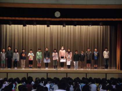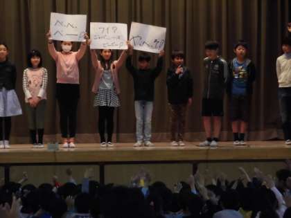 委員長としてがんばりたいことを全校児童に伝えました。