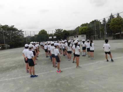 6年生は1・2時間目に喜多見中学校の校庭をお借りし、表現の練習をしました。