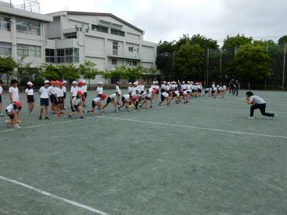 喜多見中学校で徒競走の練習しました。久しぶりに広い校庭でたくさん走りました!スタートやカーブの走り方の練習をしました。(5月10日)