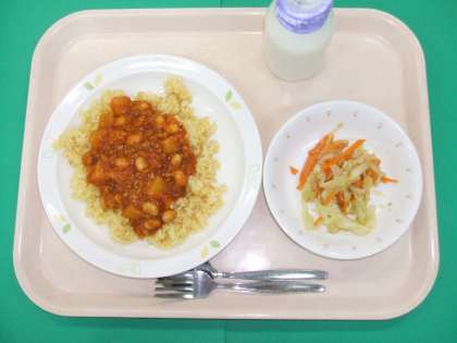 *チリビーンズライス *ごまドレサラダ *牛乳