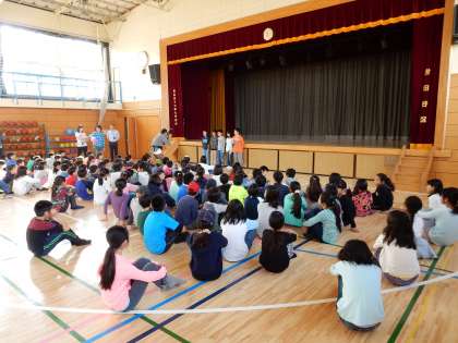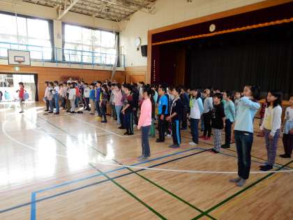 いよいよ、待ちに待った川場移動教室です。元気な声で、いってきます!