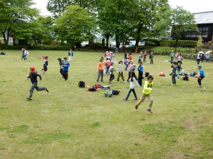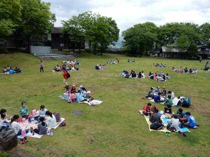 川場村に着きました! まずはSL広場でお弁当です。 食べた後は自然の中で思いっきり遊びました。