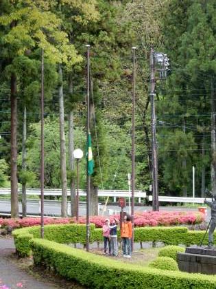 ふじやまビレジに着きました。開室式です。