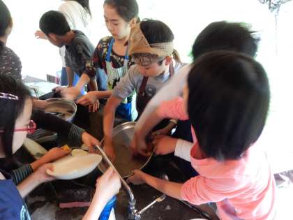 食べ終わったらみんなで片付けです。ピカピカになるまで一生懸命洗いました!最後まで協力してできました。