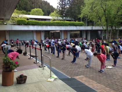 2日目の朝です。みんなで体操をし、朝会を行いました。