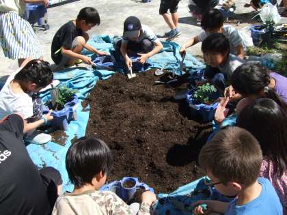 3年生〈総合〉トマトの苗植え 公開日 2016/05/12 更新日 2016/05/12 3年生 今年3年生はトマトを育てるため、トマトの苗植えをしました。労作プロジェクトの多くの方々にお手伝いをいただき、無事に苗植えができました。夏には真っ赤で美味しいトマトが収穫できるよう、これから愛情込めて育てていきます。 3年