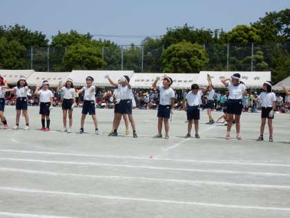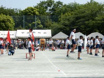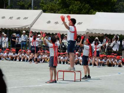 応援団が赤組・白組を引っ張り盛り上げました。 各学年の競技や短距離のときは前に出て一生懸命応援しました。