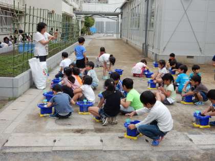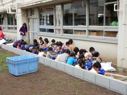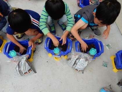 あさがおの種をまきました。大きく育つといいですね。(5月20日)