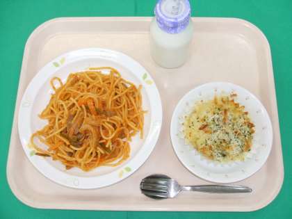 *スパゲティーナポリタン *ポテトのクリーム焼き *牛乳