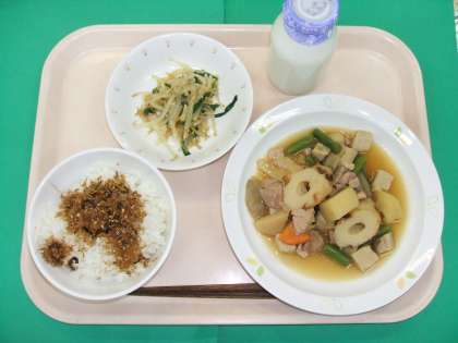*ごはん *カミカミ佃煮 *筑前煮 *もやしのごま風味 *牛乳