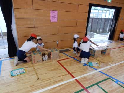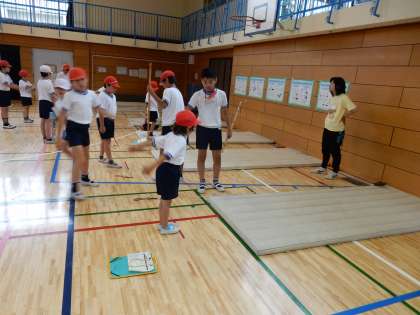 6年生が1年生のスポーツテストのお手伝いをしました。