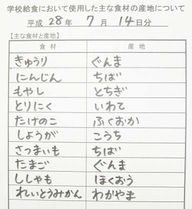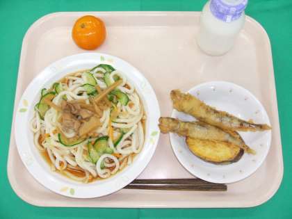 *冷やしうどん *さつまいもとししゃもの天ぷら *冷凍みかん *牛乳