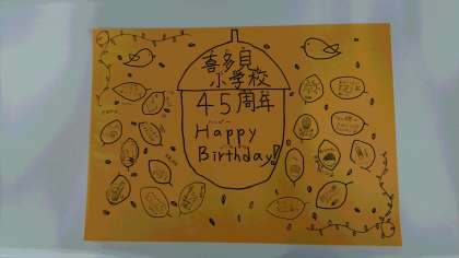 今日の給食は、開校45周年を記念した給食です。給食委員会のみんなで、特製ランチョンマットを作ってくれました。放送委員会は、開校45周年記念放送をしました。みんなでおいしく記念給食をいただきました。