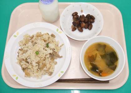 *ぶた肉とごぼうのごはん *うずら豆の煮豆 *みそ汁 *牛乳