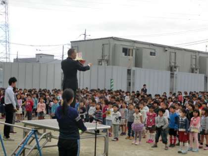 朝会 公開日 2016/10/24 更新日 2016/10/24 その他の教育活動 放送室が工事中だったため、久しぶりの校庭での朝会です。 少し寒い気候でしたが、しっかりと校長先生の話を聞いていました。(10月24日)