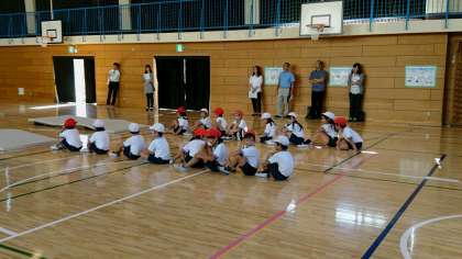 今日の5時間目に喜多見小学校と喜多見中学校の教員が、本校で研修会をしました。2年生の体育・3年生の社会と外国語活動・4年生の音楽の授業を通して指導方法を学び合いました。