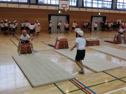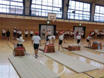 とび箱の学習です。 上手にとべるよう、それぞれがめあてをもって運動しました。(10月28日)
