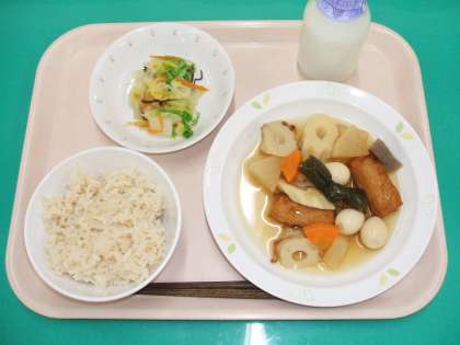 *茶めし *おでん *白菜のゆず風味 *牛乳