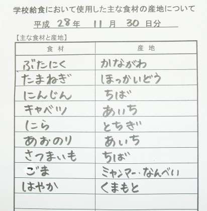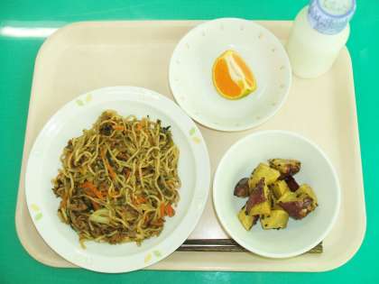 *ソース焼きそば *大学いも *くだもの(早香) *牛乳