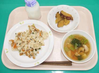 *こぎつねごはん *さつまいもの煮ころがし *吉野汁 *牛乳