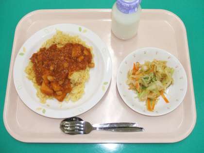 *チリビーンズライス *ごまドレサラダ *牛乳