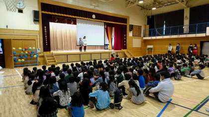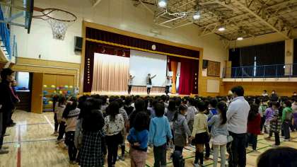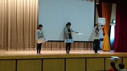 毎週木曜日の朝は、児童集会があります。昨日は、保健委員会による保健集会でした。風邪の予防をテーマに発表をしました。クシャミをすると唾液の飛沫が5メートルも飛ぶと知り、みんなビックリ!手洗い、うがい、マスクの重要性を理解しました。