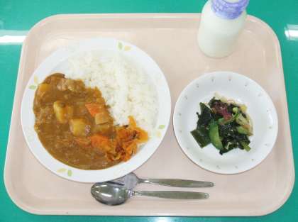 *カレーライス *福神漬 *海そうサラダ *牛乳