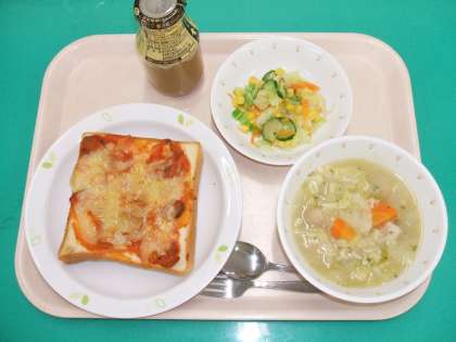 *ピザトースト *フレンチサラダ *ABCポトフ *コーヒー牛乳 今日は6年生のリクエスト給食です。