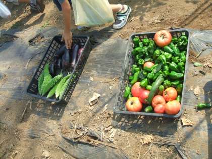 朝から厳しい日差しの中、子どもたちは一生懸命、草とりや収穫をしていました。