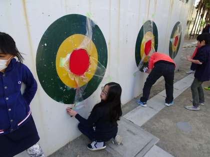 運動委員会の45周年の取り組みとして、的当ての色を塗り直しました。