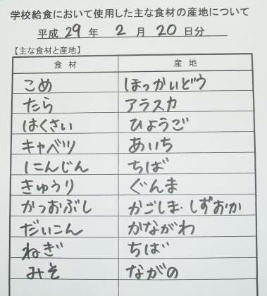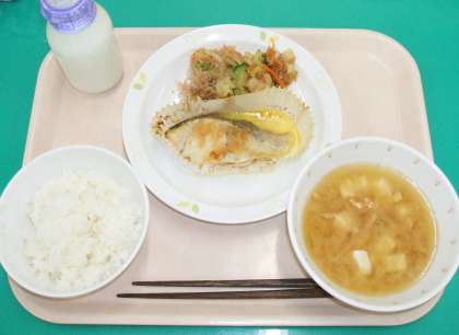 *ごはん *タラのバター焼き *かつお節サラダ *みそ汁 *牛乳