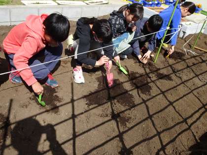 ジャガイモ植え 公開日 2017/03/13 更新日 2017/03/13 5年生 ジャガイモを植えました。 中村先生のくわしい説明があった後に、土を20cmほど掘って種イモを植えました。 今年の7月頃に収穫予定です。楽しみですね。(3月8日)