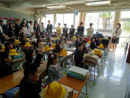 わくわくドキドキの1年生。どんな学校生活があるか楽しみですね。(4月6日)
