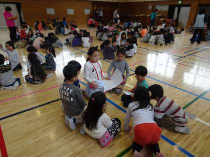 自己紹介をして、1年生が行ってみたいところをインタビューしました。(4月22日)