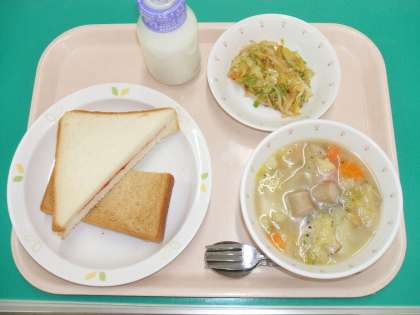 *2色サンド *ポトフ *ごまドレサラダ *牛乳
